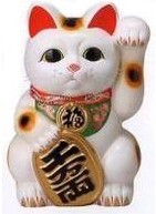 综述虔诚的日本人在日本各地建立猫寺,并且每年也都有举行猫祭,较著名的猫寺有东京的豪德寺、自性寺、西方寺等,每座猫寺都会有绘声绘影的灵猫救人的动人故事。 招财猫的传说可以追溯到四百多年前的江户,但是却是在一百五十年前才出现陶瓷器招财猫,而招财猫的由来、典故,历史却又众说纷纭,发祥地也版本多多。由江户末期到明治、大正,招财猫的兴衰大概可以分别如下: 天保~安政年间(1830~59)全盛期,明治初年(1868~75)、8年(1875~6)复兴渐次衰退,明治13年(1880)顷向渐渐没落,大正12年(1923)以后为尾张屋春吉复兴。 日本有不少店家,在商店门口放置著一只彩陶猫,它永远伸长著一只手,显出一本正经的神态欢迎客人到来,这就是招财猫。由于招财猫的神情可爱、讨喜,而日本人也和中国人一样喜欢讨个吉利,在看到招财猫伸长著手,一付招来钱财的样子,马上连想到客多旺财,于是将它供在家中或铺头,成了商店和家庭的装饰品,并且期待能招来福气与财运。招财猫的手举得高就更易招财、招客,但也不可太高,因为太高会破坏招财猫的外型。 部份是 |